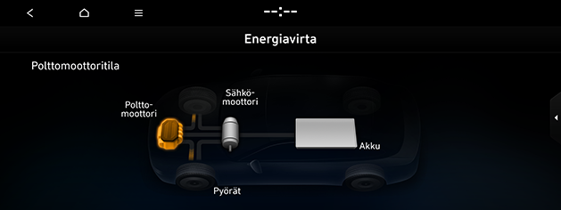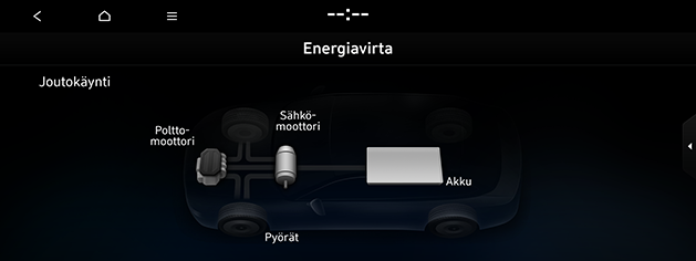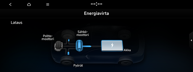 Kun ajoneuvo on tyhjäkäynnillä, polttomoottorin tehoa käytetään akkujen lataamiseen.