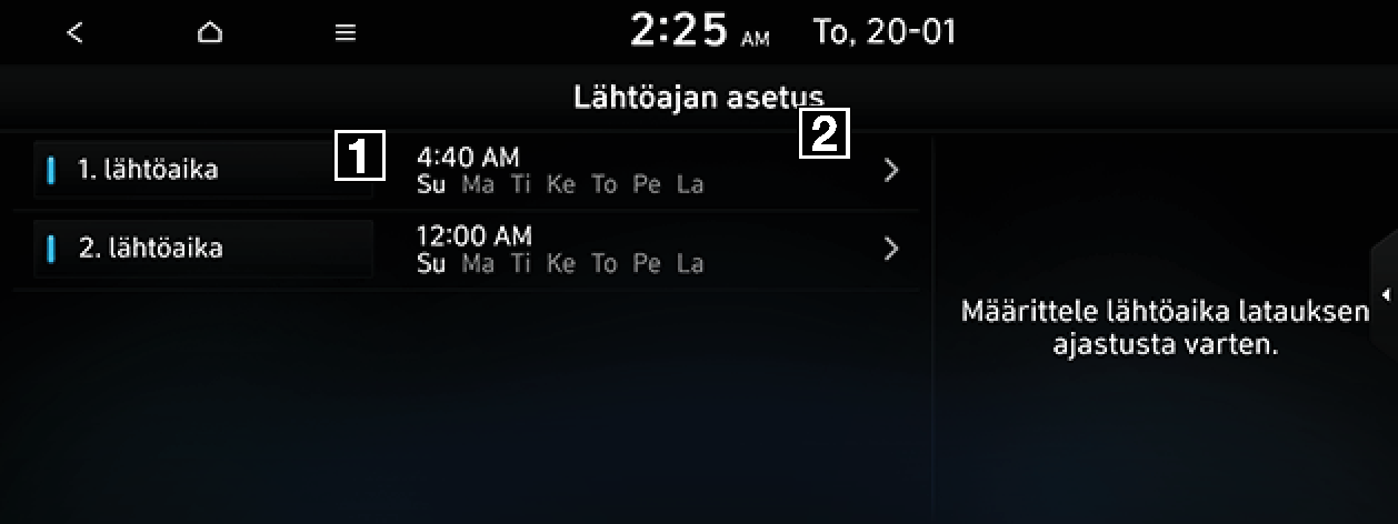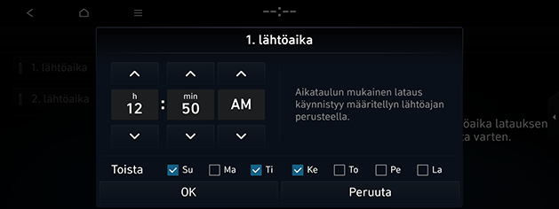 Paina PHEV > Lataus-hallinta > Lataus- asetukset > Ajastettu lataus.