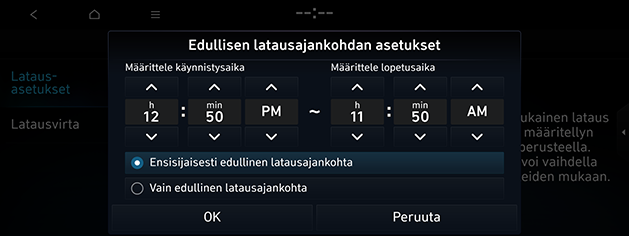 Ensisijaisesti edullinen latausajankohta: Lataus aloitetaan ajastettua latausaikaa noudattaen.