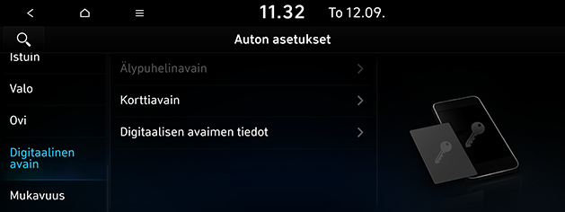 Paina SETUP > Auto > Digitaalinen avain.