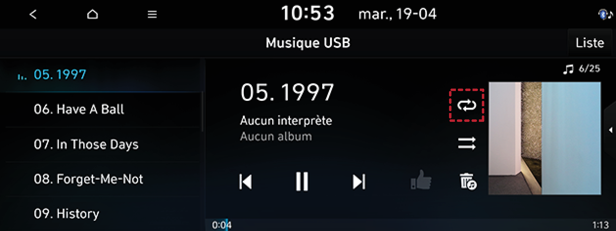 Lorsque vous faites glisser ou appuyez sur la partie de la barre de progression souhaitée, la musique de la pièce sélectionnée joue.