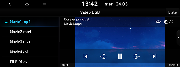 ] > Sources multimédia > Vidéo USB ou alternez avec le bouton MODE sur le volant. -