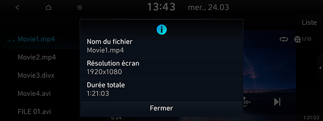 Cette fonction affiche le nom, la résolution et l’heure de lecture du fichier.