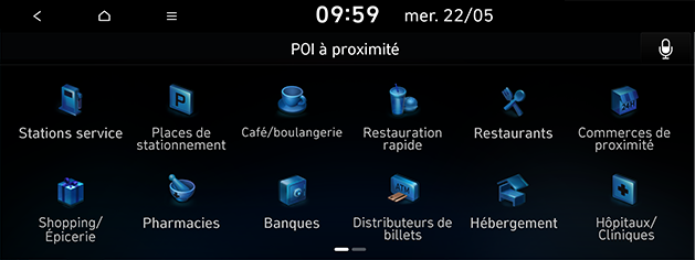 Position actuelle : recherche des POI près de la position actuelle du véhicule.