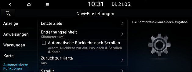 Automatische Rückkehr nach Scrollen: Legt fest, dass das Fahrzeug automatisch in die Mitte der Karte zurückkehrt.