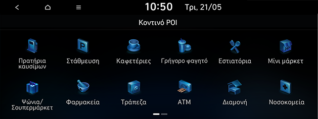 Προορισμ.: Αναζητά υπηρεσίες Hyundai κοντά στον τρέχοντα προορισμό. Διατίθεται μόνο όταν ο προορισμός έχει οριστεί.