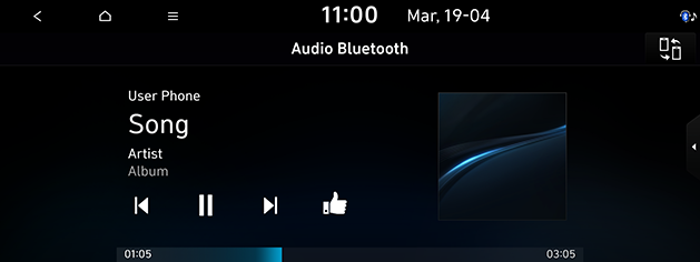 Premere MEDIA sull’unità principale. Viene visualizzata la schermata Audio Bluetooth.
