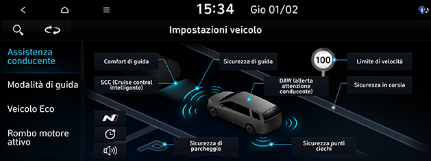 Sicurezza di guida (se in dotazione): Regola le proprietà del sistema di sicurezza di guida.