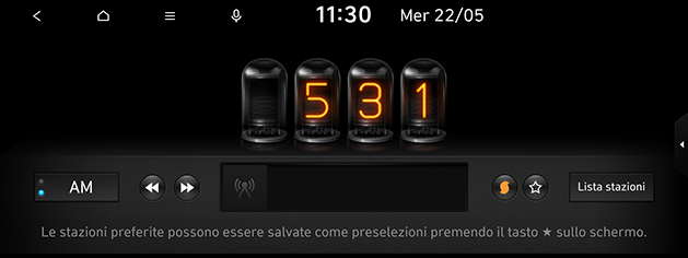 Premere DAB/FM o FM per cambiare la banda e passare alla radio AM, se correntemente è selezionata la banda DAB (se in dotazione)/FM. Viene visualizzata la stazione ascoltata per ultima.