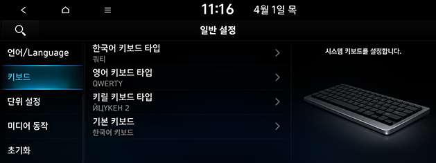 • 한국어 키보드 타입: 쿼티 또는 ㄱㄴㄷㄹ을 선택합니다.