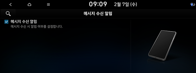 SETUP > 기기 연결 > 메시지 수신 알림을 누르세요. 체크하면 수신 메시지에 대한 알림 팝업창을 볼 수 있습니다.
