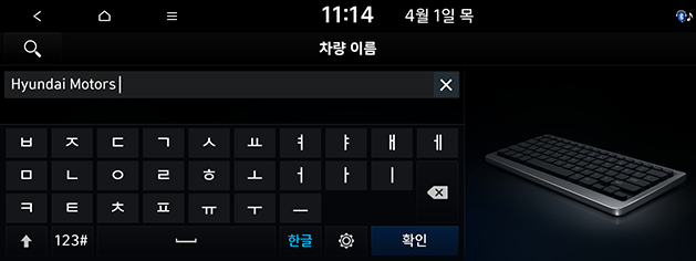 키패드를 이용하여 원하는 이름을 입력하고 확인을 누르세요.