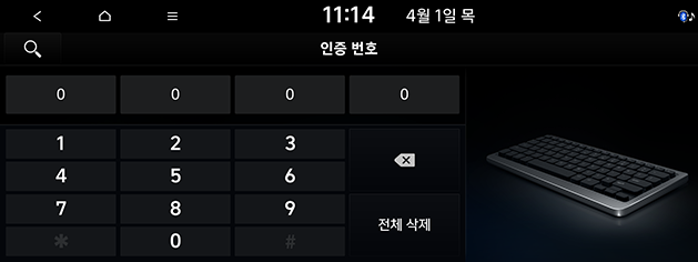인증번호는 휴대 전화와 자동차 시스템 간의 블루투스 연결에 사용되는 4 자리 인증 코드입니다. 기본 인증번호는 0000으로 설정되어 있습니다.