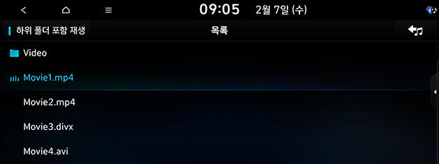 비디오는 운전 중에는 재생되지 않습니다. (교통 법규에 의거하여, 차량이 정지하거나 변속기 레버가 P 위치에 있을 때만 비디오를 사용할 수 있습니다.)