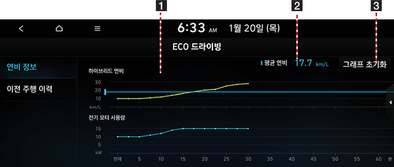 연비 정보 그래프는 시스템이 꺼질 때마다 초기화됩니다.