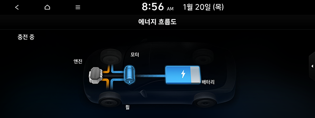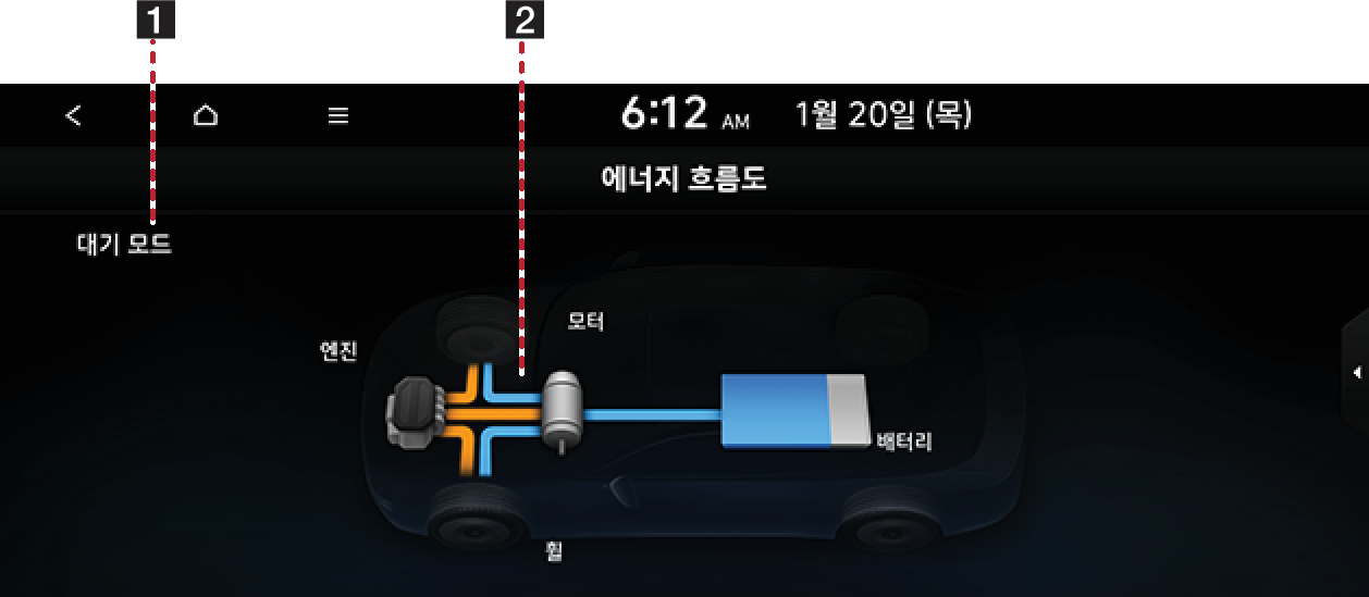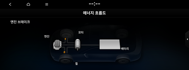 차량의 주행에 따른 각 구성 요소들 간의 동력 전달 흐름을 표시합니다.