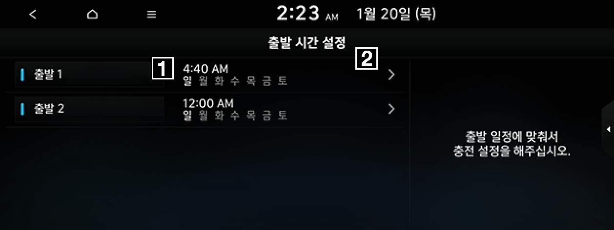 충전 스케줄을 위해 예정 출발 시간을 설정하세요.