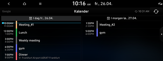 Ved å bruke Bluelink-smarttelefonappen, vil de fortsette med å lenke til kalenderen (Google, iCloud) som har vært brukt av kunden.