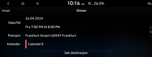 I tilfelle skjermen med tidsplandetaljer har stedinformasjon, blir stedinformasjon søkes etter ved å navigere når brukeren velger Søk destinasjon-knappen.