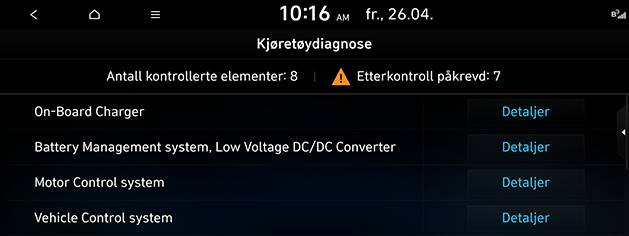 Hvis kjøretøydiagnosen mislyktes, utføres diagnostikken automatisk igjen når du slår på kjøretøyet.