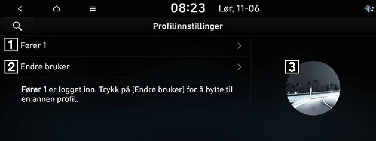 Viser profilnavnet som benyttes i systemet. Trykk direkte på profilnavnet for å endre innstillingene i forbindelse med profilen eller nullstille dem.