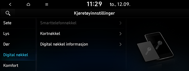 Trykk på SETUP > Kjøretøy > Digital nøkkel.