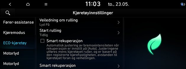 Trykk på SETUP > Kjøretøy > ECO-kjøretøy.
