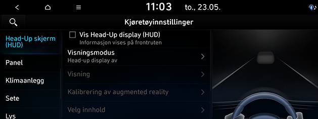 Trykk på SETUP > Kjøretøy > Head-Up skjerm (HUD).