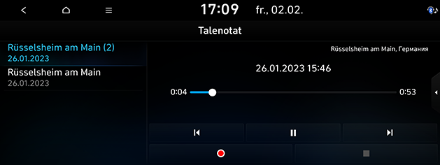 For å spille et ønsket talememo, velg det i talememo-listen.