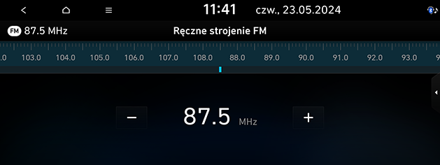 Aby znaleźć żądaną częstotliwość radiową, przeciągnij pasek częstotliwości w lewo/w prawo lub naciśnij [