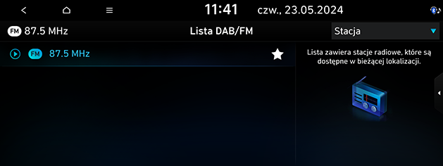 Można wyświetlić listę stacji o najlepszym sygnale nadawania. Na ekranie radia naciśnij Lista stacji.