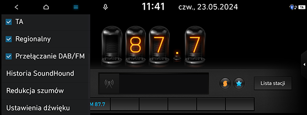 Zostanie wyświetlony ostatnio odsłuchany tryb radia.