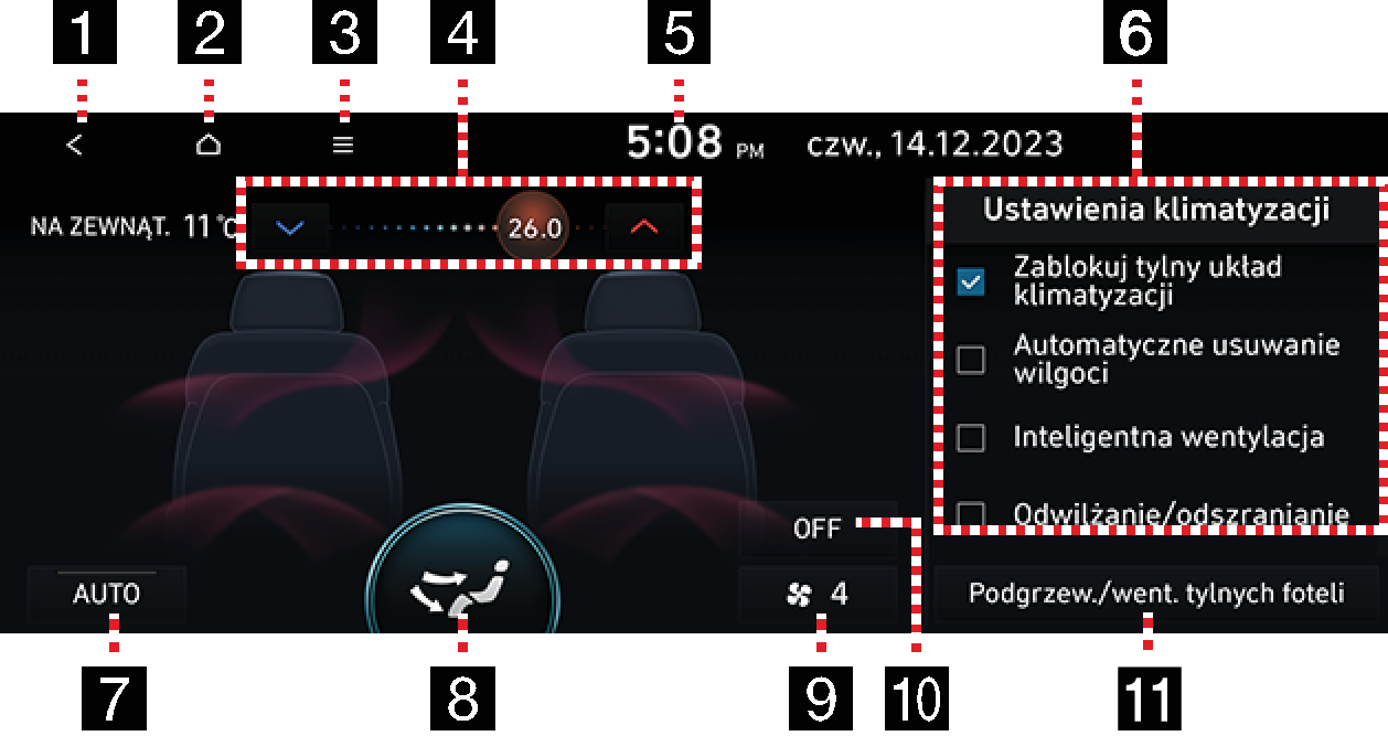 Reguluje temperaturę tylnego fotela.