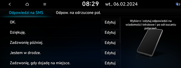 Możesz wybrać żądany komunikat w opcjach Odpowiedzi na SMS lub Odpow. na odrzucone poł..