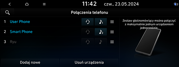 Można zmienić priorytet sparowanych urządzeń, które mają być podłączone do systemu.