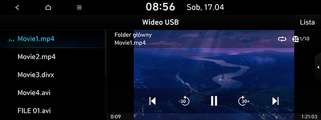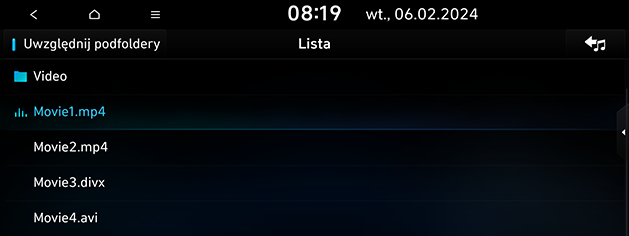Możliwe jest odtworzenie żądanego pliku poprzez wyszukanie go na liście na urządzeniu USB.