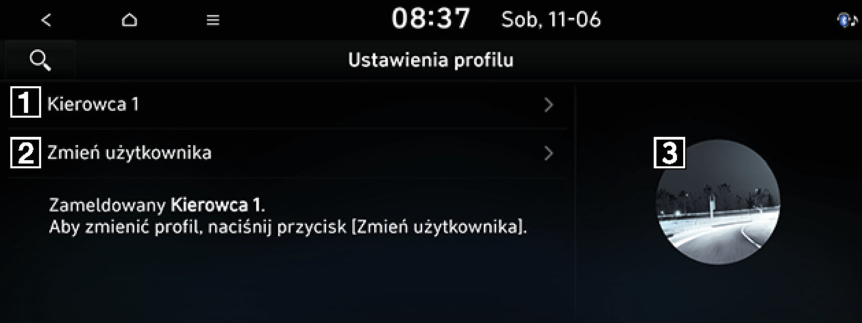Wyświetla nazwę profilu użytą w systemie. Naciśnij samą nazwę profilu, aby zmienić ustawienia związane z profilem lub je zresetować.