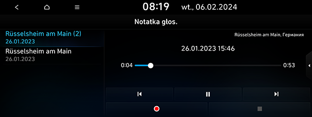 Aby odtworzyć wybraną notatkę głosową, wybierz ją z listy notatek głosowych.