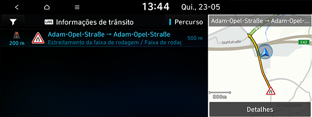 A informação atual de um evento de trânsito/rodoviário é exibida de forma simples na lista de informações de trânsito. Esta função poderá não ser refletida, dependendo das condições.