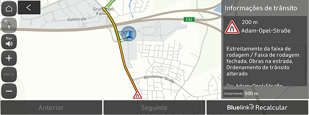 Bluelink Recalcular: recalcula o percurso refletindo a informação de trânsito.
