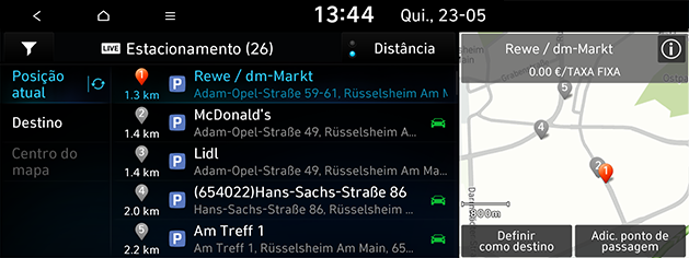 Posição atual: pesquisa parques de estacionamento disponíveis perto da localização atual do veículo.