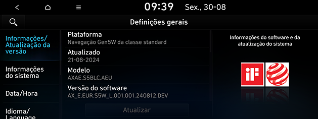 Para a segurança de software do sistema, software melhorado, função recentemente adicionada ou mapa mais recente para o sistema, necessita de uma atualização. Algumas funções e imagens poderão diferir do produto real, de acordo com o modelo, opção e país.
