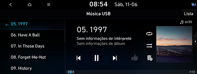 Pode reproduzir o ficheiro pretendido pesquisando a lista de ficheiros do Menu USB.