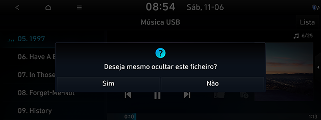 Pode ocultar o ficheiro em reprodução atualmente em USB.
