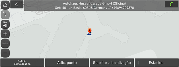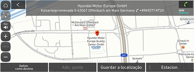 Pode configurar as instalações da assistência Hyundai como destino. Alguns itens nas imagens poderão diferir do ecrã real, de acordo com o modelo, opção e país.