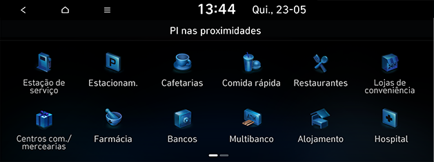 Destino: pesquisa serviços Hyundai perto do destino atual. Apenas disponível quando o destino está definido.