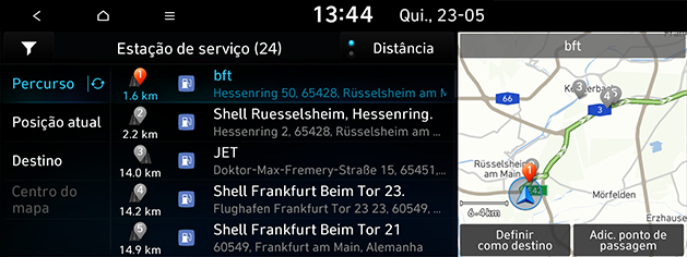 Posição atual: pesquisa estações de serviço perto da localização atual do veículo.