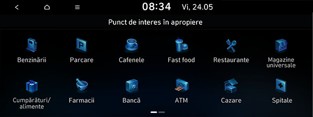 Puteți seta un POI ca destinație folosind diferite metode de căutare. Unele elemente din imagini pot fi diferite de ecranul real, în funcție de model, opțiuni și țară.