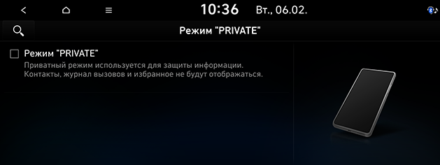 Можно установить приватный режим для защиты личной информации. При активном приватном режиме контакты, история вызовов, избранное и сообщения не отображаются.