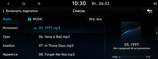 ] > Медиаисточники > Музыка с USB, или переключайте кнопкой MODE на руле. -